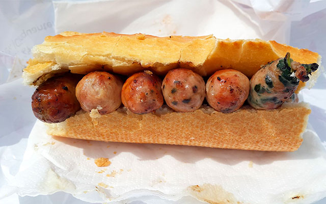 - Сосиски. Бельгийские сосиски не чета тем, что обычно кладут в хот-доги. Как правило, для стрит-фуда используются колбаски двух видов: boudin (белая) или pensen (черная кровяная). При приготовлении в них добавляют приправы и специи, а в boudin Liège – еще и свежую зелень и молоко. Такую еду подают в теплой булочке или багете, поливают кетчупом или горчицей, добавляют колечки лука и квашеную капусту. Типичный бельгийский способ вкусно и недорого подкрепиться!